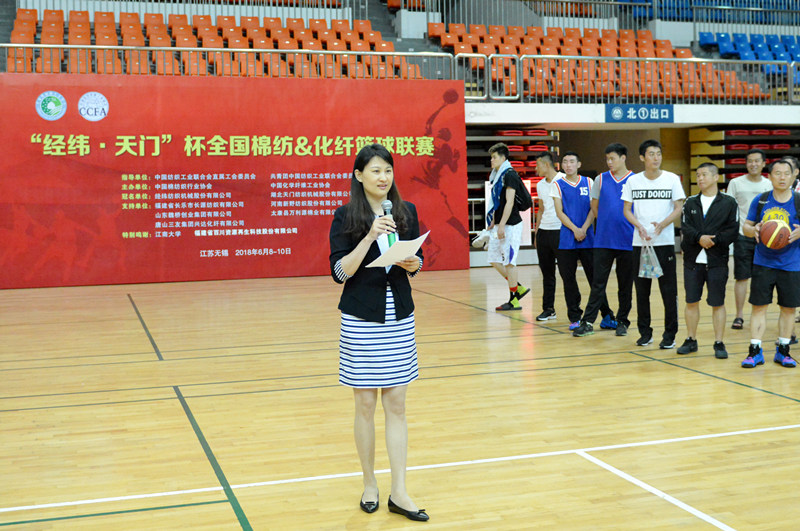 作為本次比賽的兩家冠名單位,中國紡織機(jī)械(集團(tuán))有限公司工會主席庫冠群代表經(jīng)緯紡織機(jī)械股份有限公司致辭,湖北天門紡織機(jī)械股份有限公司黨委書記魯?shù)挛脑谥罗o中表示:天門紡機(jī)應(yīng)邀參加本次聯(lián)賽,并有幸成為冠名單位之一,旨在以籃球的名義為促進(jìn)紡織文化的交流盡綿薄之力。