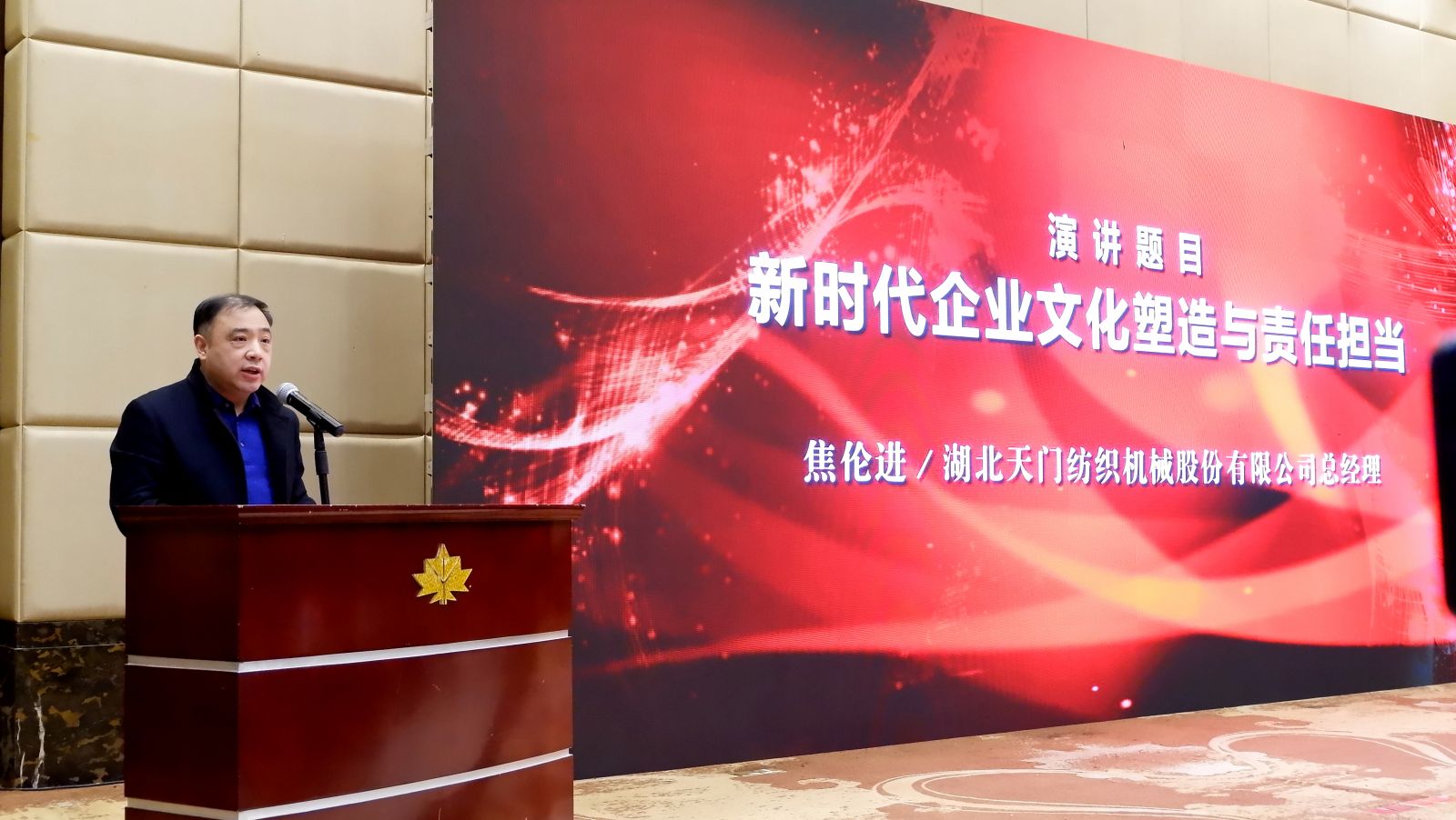 在會(huì)上,湖北天門紡織機(jī)械股份有限公司總經(jīng)理焦倫進(jìn)作了《新時(shí)代企業(yè)文化塑造與責(zé)任擔(dān)當(dāng)》主題發(fā)言。他表示,這次傳媒大會(huì)的召開,對(duì)于充分發(fā)揮新聞媒體的宣傳和輿論導(dǎo)向作用,推進(jìn)行業(yè)發(fā)展,進(jìn)一步提高企業(yè)的知名度和美譽(yù)度,具有非常重要的意義。他談道,天門紡機(jī)歷來(lái)非常重視新聞媒體的宣傳導(dǎo)向作用,公司內(nèi)部創(chuàng)辦了“天門紡機(jī)報(bào)”,建立了“湖北天門紡織機(jī)械股份有限公司官網(wǎng)”、“天門紡機(jī)微信公眾號(hào)”,利用微信平臺(tái)在公司內(nèi)部建立了8個(gè)微信工作群,獲得了中紡聯(lián)“創(chuàng)新管理獎(jiǎng)”。