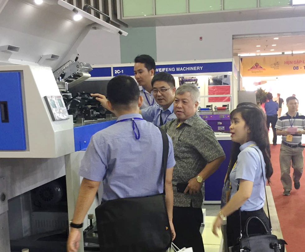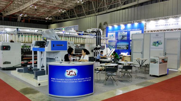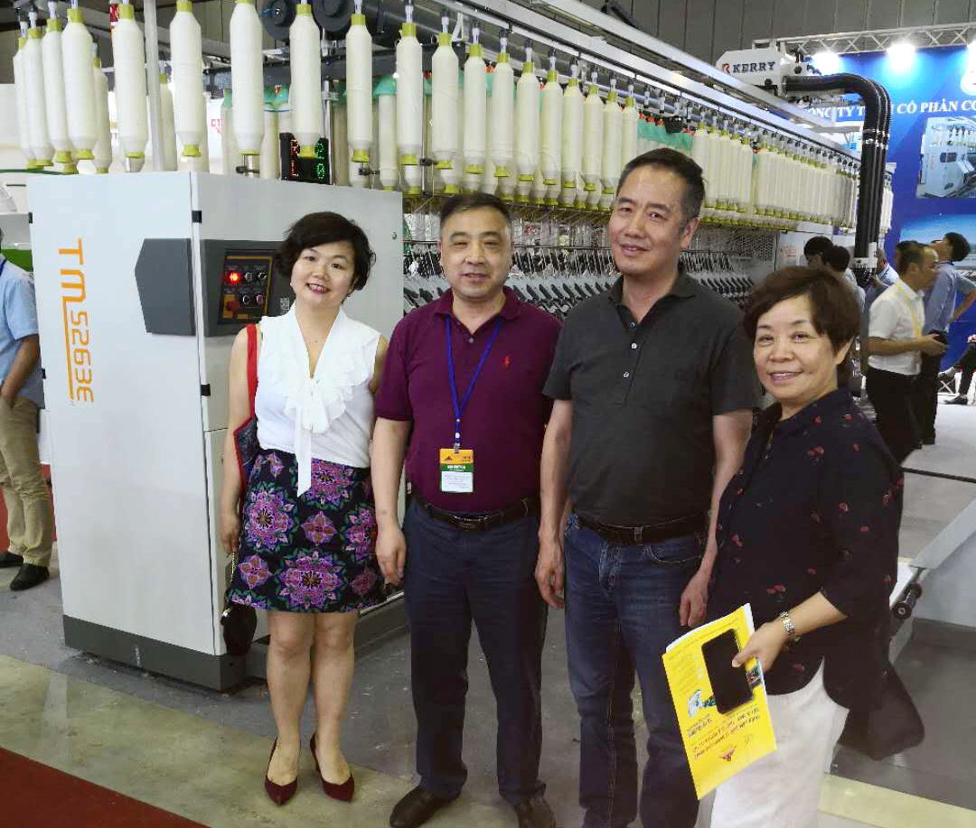 在展會上,位于A2-2D-1湖北天門紡織機(jī)械股份有限公司展位人頭攢動、客戶云集,成為整個展會的一大亮點,VINATEX NAM DINH、VICOTEX、 成功紡織、臺灣興業(yè)、臺南紡織、東光公司等當(dāng)?shù)仄髽I(yè)負(fù)責(zé)人親赴現(xiàn)場參觀,華孚時尚董事長孫偉挺等嘉賓在天門紡機(jī)展位認(rèn)真觀看設(shè)備演示,詳細(xì)了解了產(chǎn)品的新性能和新工藝,對天門紡機(jī)并條機(jī)與細(xì)紗機(jī)兩款展機(jī)給與高度評價。