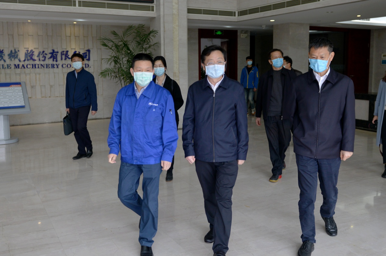 4月21日,湖北省人大常委會(huì)黨組成員、人大常委會(huì)副主任胡志強(qiáng)一行,在天門市委書記莊光明等領(lǐng)導(dǎo)的陪同下,到天門紡機(jī)調(diào)研指導(dǎo),實(shí)地了解企業(yè)防疫和復(fù)工復(fù)產(chǎn)情況。
