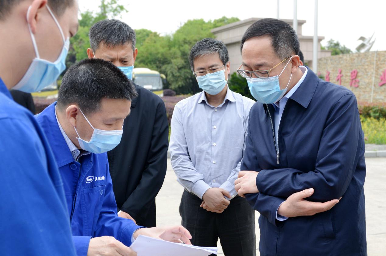 4月23日,國家衛(wèi)健委副主任于學(xué)軍率工作組,在湖北省衛(wèi)健委副主任涂遠(yuǎn)超、天門市委書記莊光明、天門市代理市長楊興銘等領(lǐng)導(dǎo)的陪同下,到天門紡機(jī)調(diào)研指導(dǎo)企業(yè)疫情防控及復(fù)工復(fù)產(chǎn)情況。