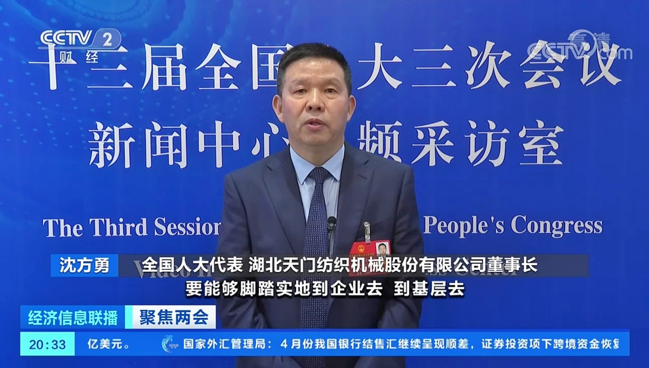 全國人大代表、湖北中小企業(yè)協(xié)會會長、湖北天門紡織機械股份有限公司董事長沈方勇在參加第十三屆全國人大三次會議期間,分別就“關(guān)于促進棉花及紡織產(chǎn)業(yè)健康發(fā)展的再次建議”、“ 關(guān)于出臺強有力措施對沖疫情影響支持湖北中小企業(yè)發(fā)展的建議”、“ 關(guān)于珍惜寶貴財政金融資源在紓困惠企工作中精準(zhǔn)施策有的放矢的建議”做專題諫言。