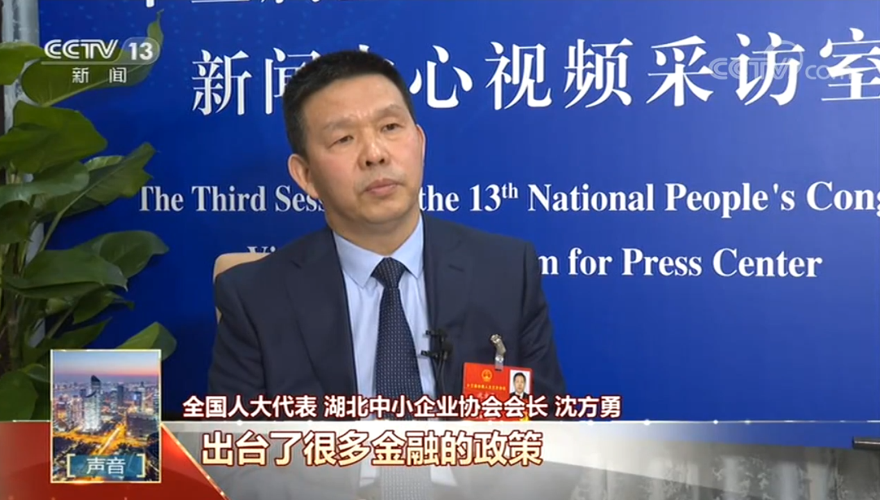 5月25日,沈方勇董事長接受央視“新聞1+1”欄目記者采訪。他以湖北企業(yè)家、湖北省中小企業(yè)協(xié)會會長身份,代表全省中小企業(yè)發(fā)聲,建議用好財稅金融政策,從三個方面發(fā)力,保護好經(jīng)濟發(fā)展的基礎(chǔ)——中小企業(yè),切實促進中小企業(yè)發(fā)展,恢復(fù)湖北經(jīng)濟。