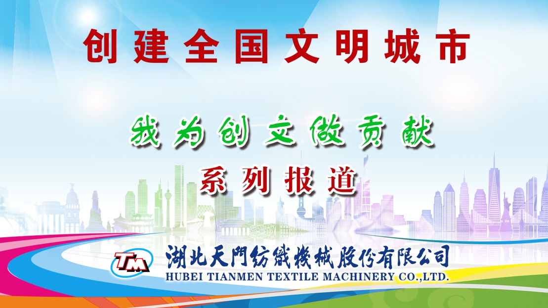 編者按:在全市上下如火如荼開展“創(chuàng)建全國(guó)文明城市”活動(dòng)之際,天門紡機(jī)動(dòng)員全體員工開展“我為創(chuàng)文做貢獻(xiàn)”系列活動(dòng),從廠區(qū)一角一落的環(huán)境衛(wèi)生整治,到員工的一言一行一衣;從車間“6S”管理的推廣,到對(duì)產(chǎn)品品質(zhì)的不斷改進(jìn)提升;從誠(chéng)信經(jīng)營(yíng),到客戶服務(wù),無(wú)一不體現(xiàn)著天門紡機(jī)對(duì)文明精髓的理解、對(duì)員工素養(yǎng)的塑造以及對(duì)高質(zhì)量發(fā)展的執(zhí)著追求。結(jié)合“我為創(chuàng)文做貢獻(xiàn)”活動(dòng)的深入開展,公司將推出系列報(bào)道。