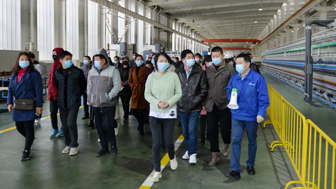 沈方勇董事長帶領(lǐng)求職人員參觀生產(chǎn)現(xiàn)場。疫情期間,天門紡機(jī)兌現(xiàn)不給黨和政府添麻煩、不給疫情防控造壓力、不給社會(huì)就業(yè)增負(fù)擔(dān)的承諾,想方設(shè)法招賢納士擴(kuò)大就業(yè)。