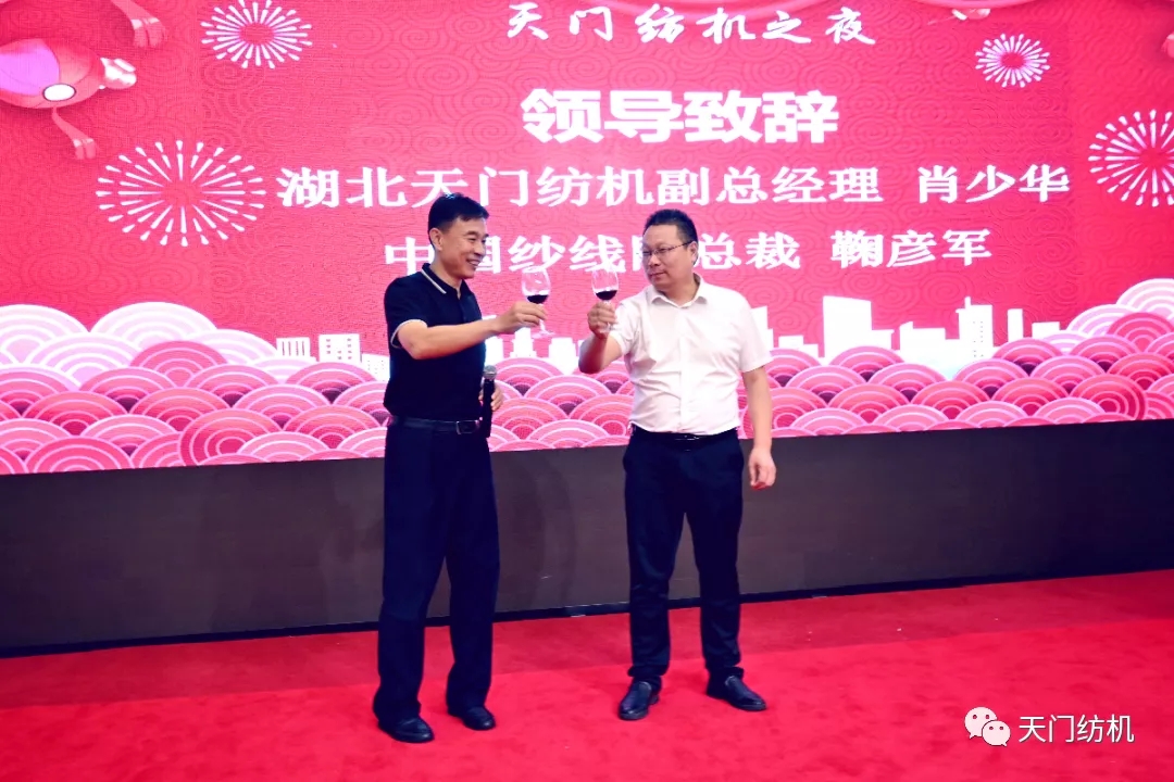 中國(guó)紗線網(wǎng)總裁鞠彥軍、天門紡機(jī)副總經(jīng)理肖少華祝酒致辭