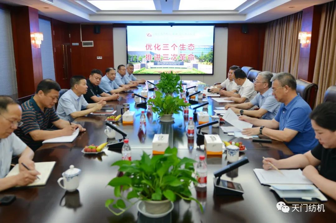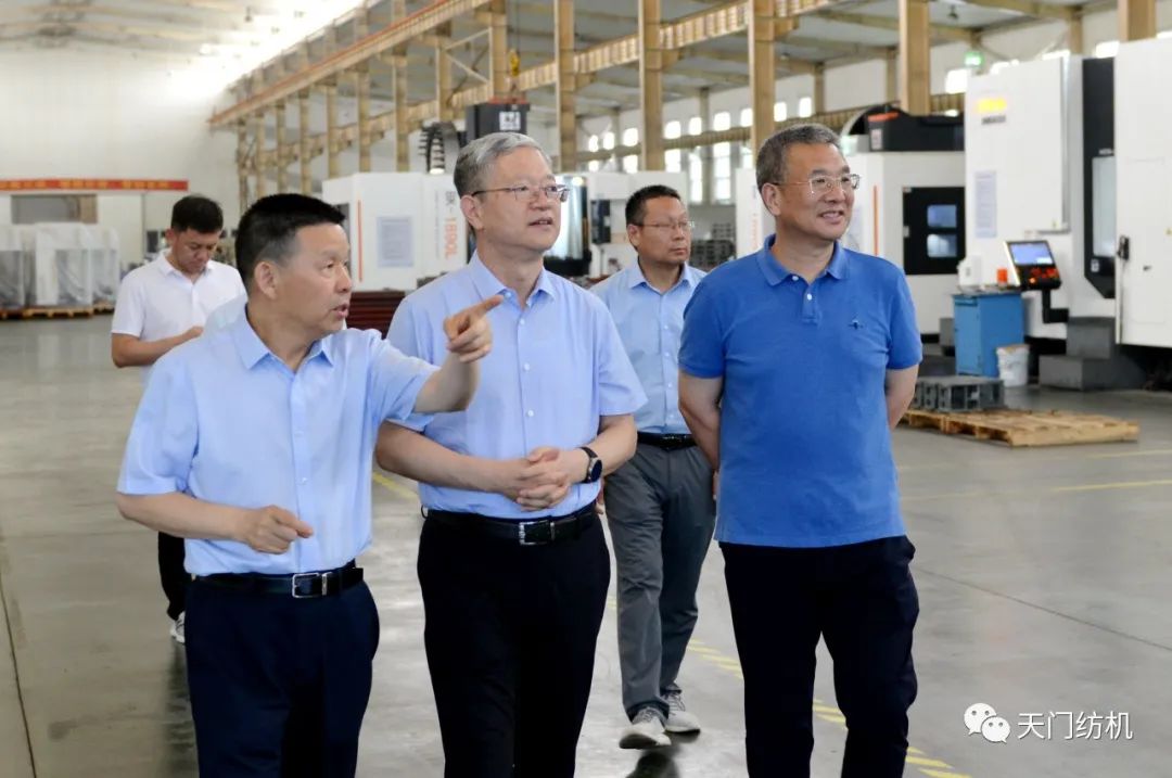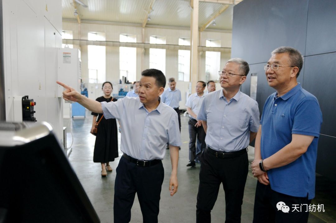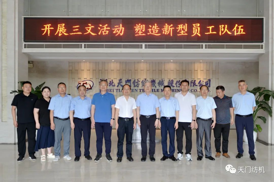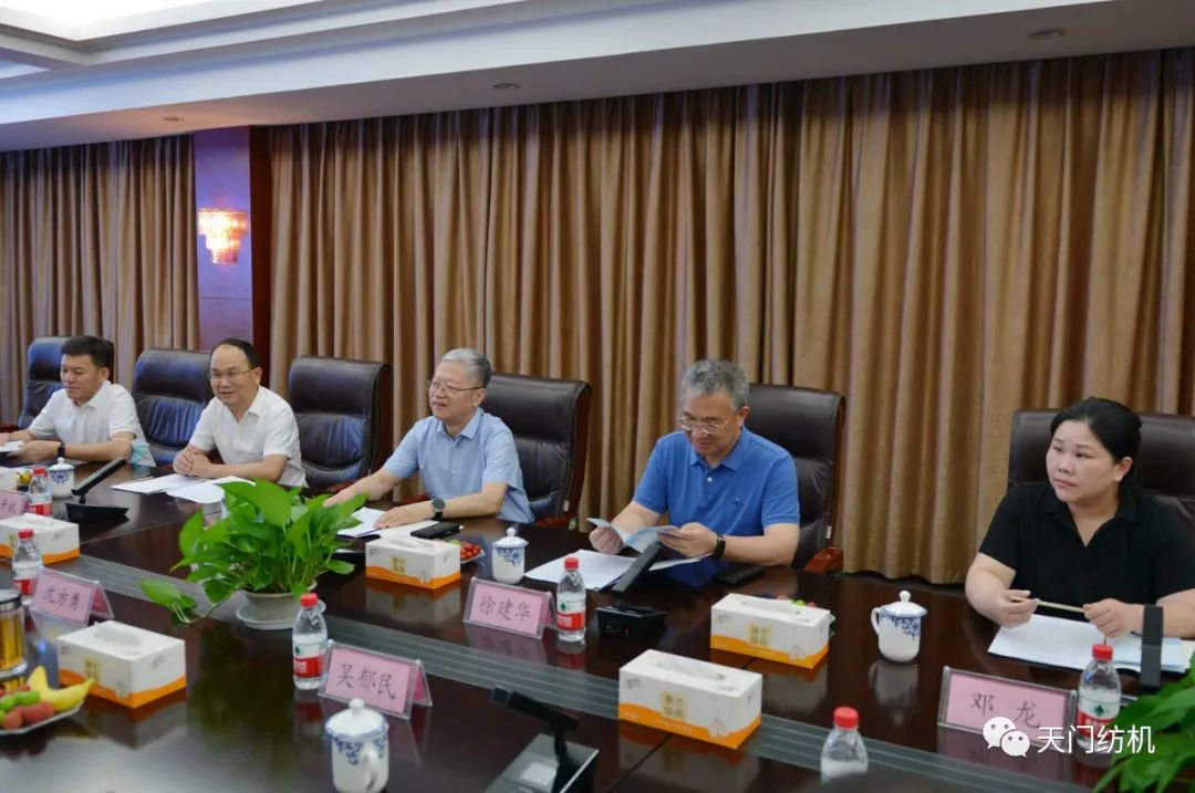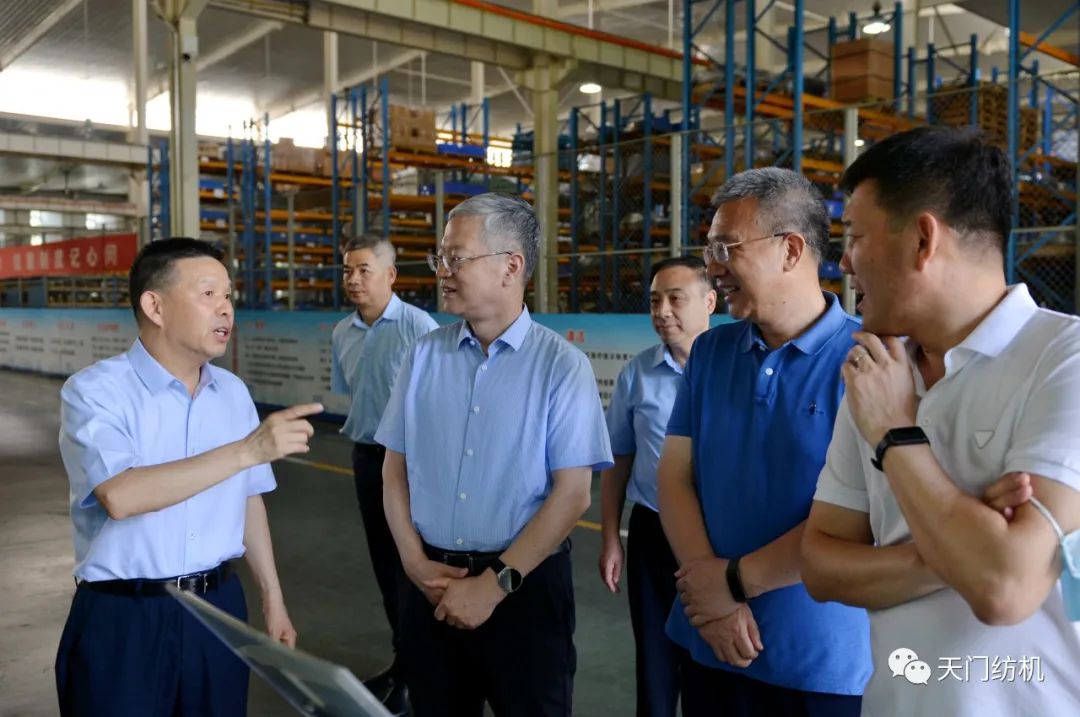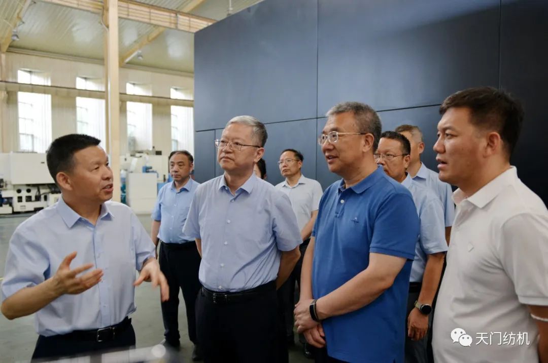 2023年6月27日下午,中國紡織工業(yè)聯(lián)合會秘書長夏令敏,中國紡織工業(yè)聯(lián)合會流通分會副會長徐建華、秘書長王水元蒞臨天門紡機調(diào)研,湖北省經(jīng)信廳副廳長周開斌、消費品工業(yè)處副處長鄧龍陪同調(diào)研。