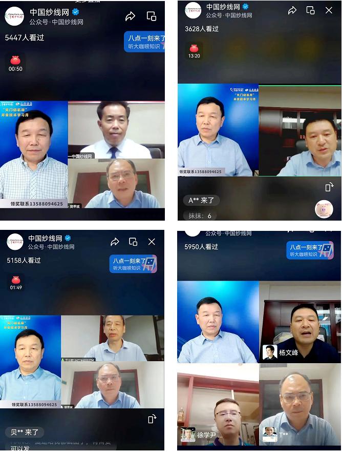 本次活動(dòng)進(jìn)行了6場(chǎng)直播。其間,天門紡機(jī)副總經(jīng)理?xiàng)钗姆寰图徔椦b備的發(fā)展趨勢(shì)作了深度剖析,分享了并條機(jī)牽伸形式、傳動(dòng)方式、換筒方式及自調(diào)勻整等方面的專業(yè)知識(shí);天門紡機(jī)品控總監(jiān)樊早斌、售后服務(wù)中心主任于少波分別就并條機(jī)操作、工藝要求、維護(hù)保養(yǎng)、常見問題排查等方面的知識(shí)和經(jīng)驗(yàn)進(jìn)行了交流。線上學(xué)習(xí)氛圍濃厚,平均每場(chǎng)都有近6千人參加學(xué)習(xí),總計(jì)超3萬(wàn)余人。