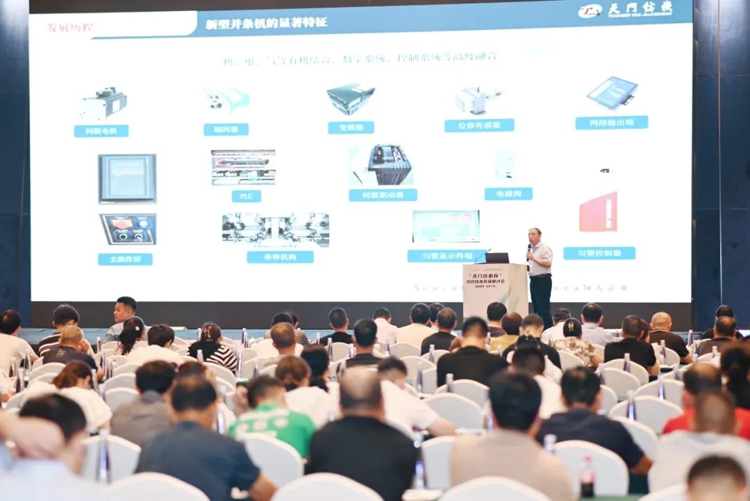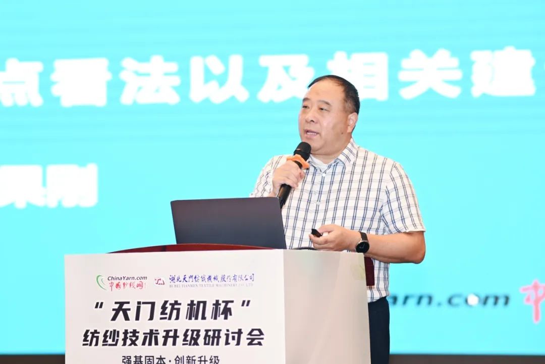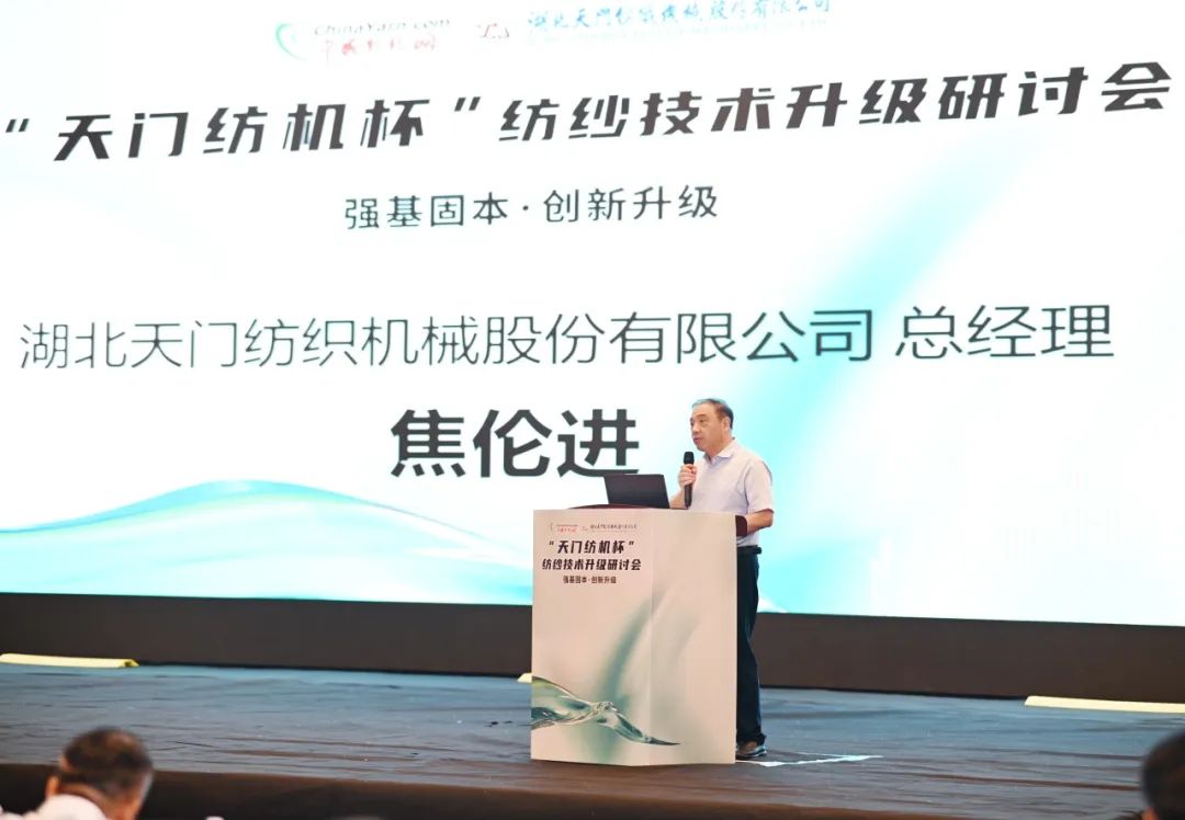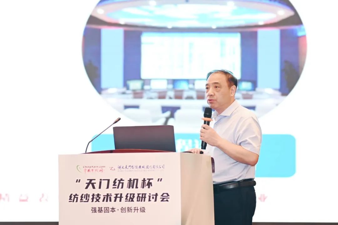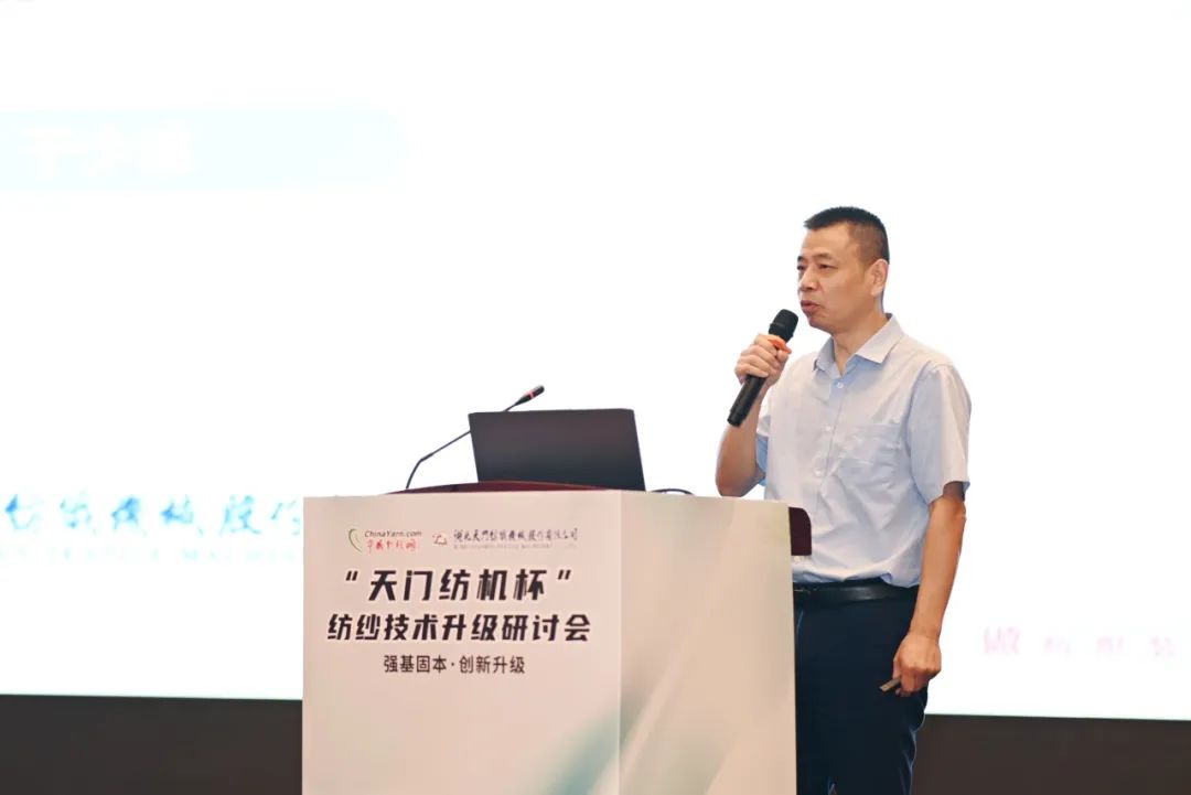 天門紡機(jī)總經(jīng)理焦倫進(jìn)向蒞臨會(huì)議的領(lǐng)導(dǎo)、嘉賓及長(zhǎng)期關(guān)心支持天門紡機(jī)發(fā)展的各界同仁朋友表達(dá)了誠摯的謝意,他表示,天門紡機(jī)“生產(chǎn)制造柔性化、倉儲(chǔ)物流自動(dòng)化、信息管理現(xiàn)代化”的5G+智慧工廠項(xiàng)目正在不斷向前推進(jìn),我們將通過自身的數(shù)字化轉(zhuǎn)型與智能化改造,為紡織企業(yè)數(shù)字化轉(zhuǎn)型和智能化改造持續(xù)提供裝備基礎(chǔ)。并作了題為《并條機(jī)的創(chuàng)新與應(yīng)用助力紡企高質(zhì)量發(fā)展》的專題報(bào)告。他交流了天門紡機(jī)堅(jiān)定不移走“專精特新”之路的工作經(jīng)驗(yàn),分享了勻整控制、在線監(jiān)控、5G+物聯(lián)網(wǎng)、自動(dòng)熱交換降溫系統(tǒng)等技術(shù)創(chuàng)新成果。