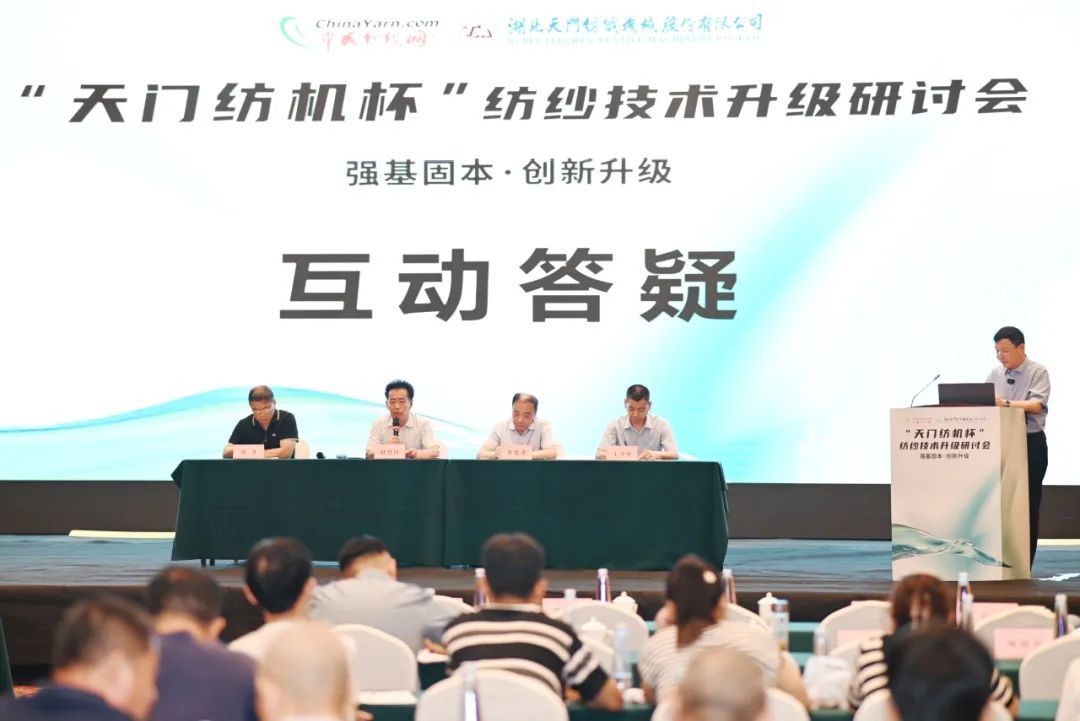在專家互動(dòng)答疑環(huán)節(jié)中,中國紗線網(wǎng)、天門紡機(jī)等單位的4位專家走向前臺(tái),依次對(duì)紡織企業(yè)相關(guān)人員提出的設(shè)備操作、技術(shù)改造及企業(yè)未來發(fā)展等問題進(jìn)行了答疑解惑。