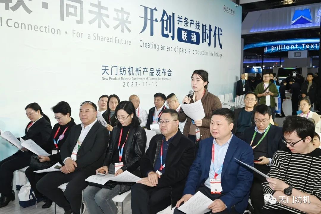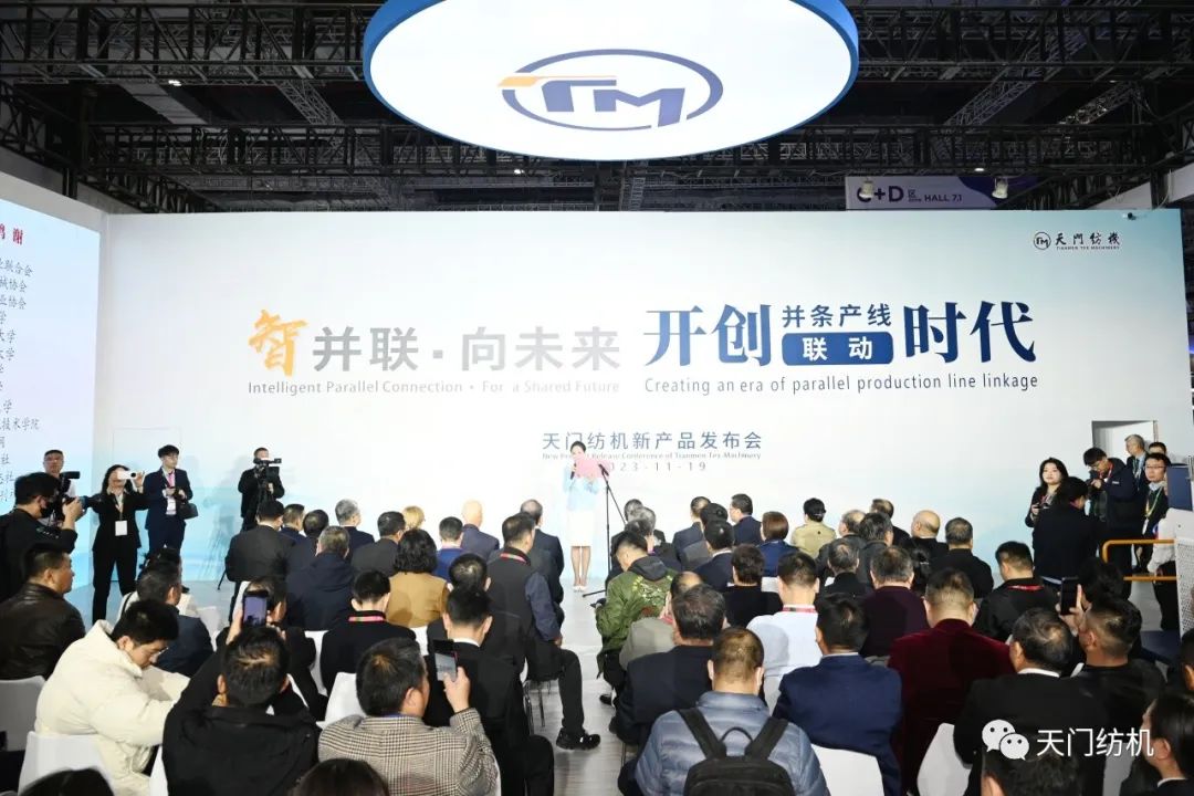 2023年11月19日,2022中國(guó)國(guó)際紡織機(jī)械展覽會(huì)暨ITMA亞洲展在國(guó)家會(huì)展中心(上海)拉開帷幕,天門紡機(jī)在展會(huì)上召開了主題為“智并聯(lián)?向未來——開創(chuàng)并條產(chǎn)線聯(lián)動(dòng)時(shí)代”的新產(chǎn)品發(fā)布會(huì)。