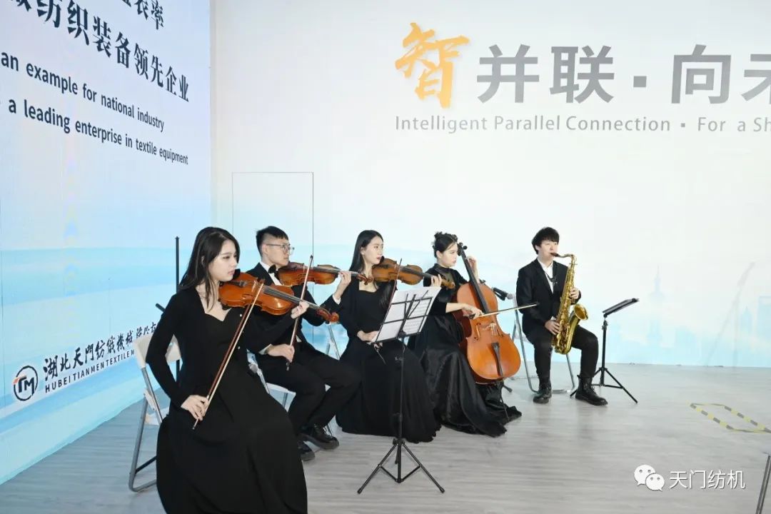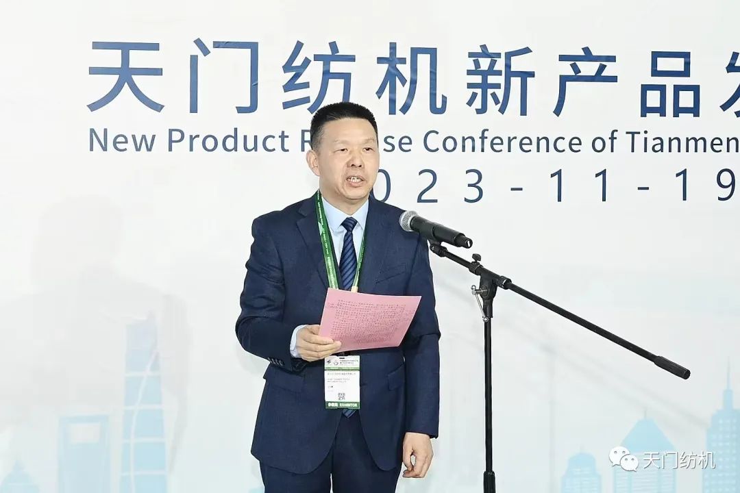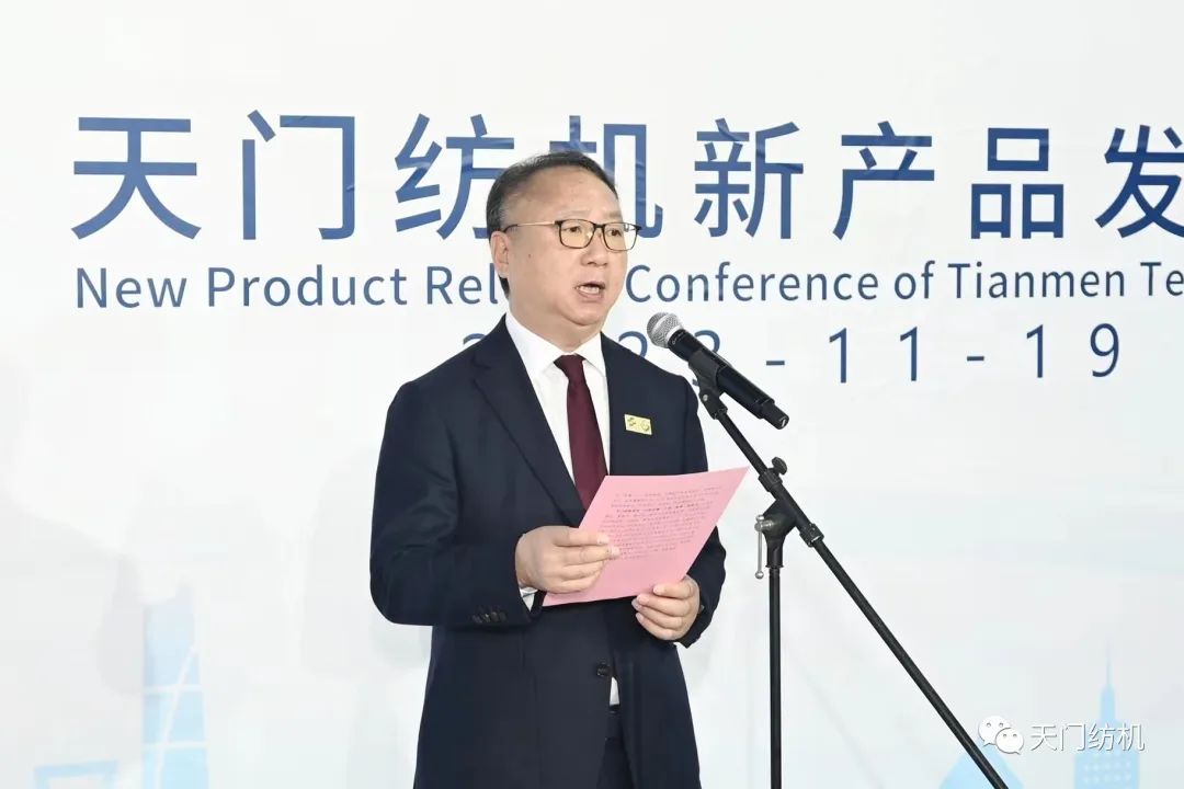 中國(guó)紡織工業(yè)聯(lián)合會(huì)會(huì)長(zhǎng)孫瑞哲,副會(huì)長(zhǎng)夏令敏、徐迎新,老領(lǐng)導(dǎo)張延愷副會(huì)長(zhǎng)和歐洲紡織機(jī)械制造商委員會(huì)主席Mr. Ernesto Maurer等嘉賓共同揭幕,天門紡機(jī)T2、T3系列新產(chǎn)品正式亮相。