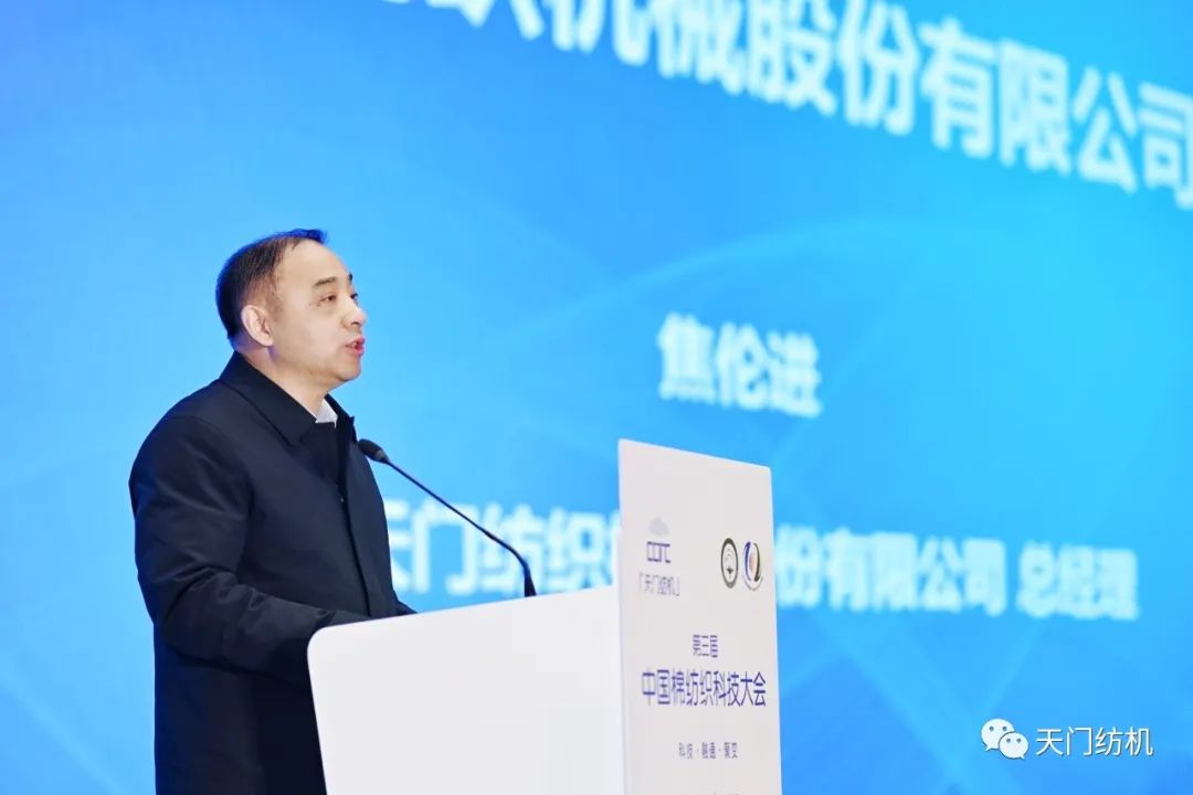 12月12日上午,中國棉紡織行業(yè)協(xié)會副會長景慎全主持開幕式,中國棉紡織行業(yè)協(xié)會會長董奎勇、湖北省經(jīng)濟和信息化廳副廳長周開斌、全國棉紡織科技信息中心主任/《棉紡織技術》期刊社社長王楊俊、天門紡機總經(jīng)理焦倫進分別為大會致辭。