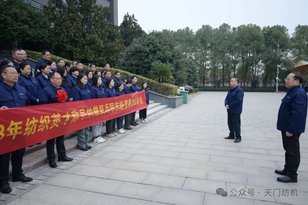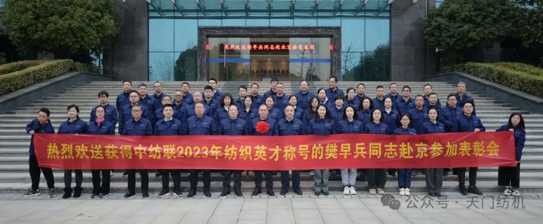 2024年1月15日上午,天門紡機(jī)部室員工齊聚科技樓大廳,歡送公司品控總監(jiān)、高級(jí)檢驗(yàn)師樊早兵同志赴京參加“2023年中國(guó)紡織人才大會(huì)”。公司總經(jīng)理焦倫進(jìn)在歡送活動(dòng)中即席講話,他說,樊早兵同志被授予“2023年度新時(shí)代紡織英才”,是中紡聯(lián)對(duì)他取得的顯著成績(jī)及奉獻(xiàn)精神的充分肯定,實(shí)至名歸。他得到如此殊榮是天門紡機(jī)的驕傲,全體員工要以他為榜樣,努力工作,奮發(fā)有為,為公司高質(zhì)量發(fā)展貢獻(xiàn)應(yīng)有的力量。送行的員工敲鑼打鼓,載歌載舞,把現(xiàn)場(chǎng)氣氛推向高潮。