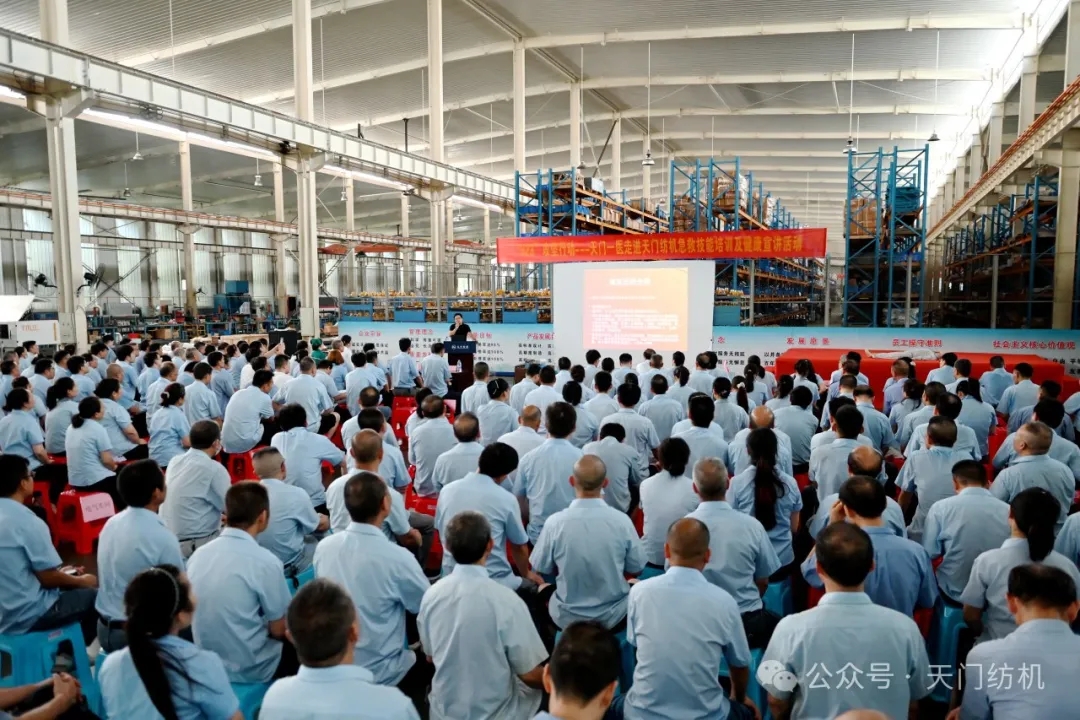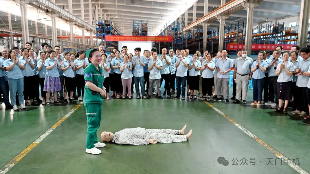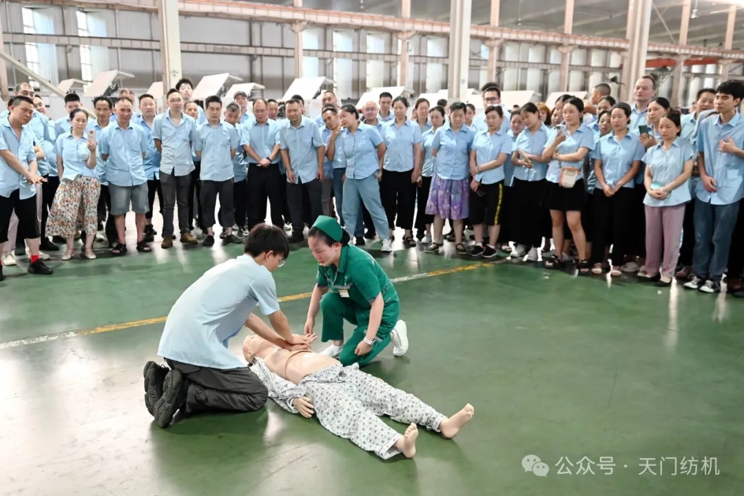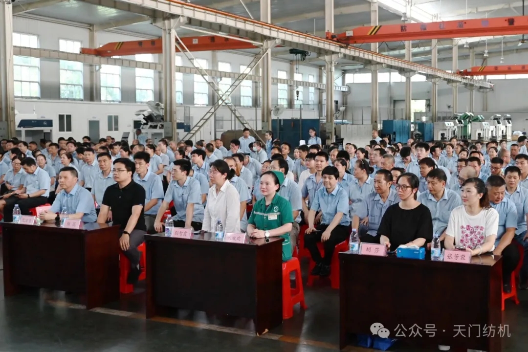 室外赤日炎炎,酷暑難當(dāng);室內(nèi)座無虛席,氣氛熱烈。2024年7月17日下午,天門紡機(jī)在生產(chǎn)現(xiàn)場組織了一場別開生面的健康知識及急救技能培訓(xùn)活動,天門市第一人民醫(yī)院的多位醫(yī)療專家應(yīng)邀來公司進(jìn)行健康知識講座和急救實(shí)操演示。