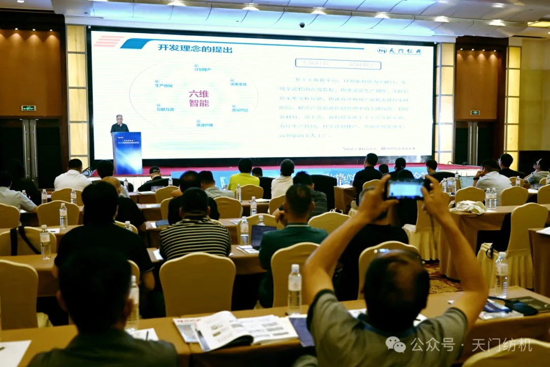 在技術(shù)交流環(huán)節(jié)中,天門紡機(jī)品控總監(jiān)樊早斌作了題為《六維智能開創(chuàng)并條產(chǎn)線聯(lián)動(dòng)新時(shí)代》的主旨報(bào)告。他深入闡述了產(chǎn)線聯(lián)動(dòng)的理念、研發(fā)背景和思路,詳實(shí)介紹了基于六維智能的并條創(chuàng)新技術(shù)以及產(chǎn)線聯(lián)動(dòng)的實(shí)踐應(yīng)用與開發(fā)進(jìn)程。他強(qiáng)調(diào),“六維智能”開發(fā)理念的提出是基于大數(shù)據(jù)平臺(tái),其創(chuàng)新點(diǎn)就是以智能制造為突破口,實(shí)現(xiàn)全流程的在線監(jiān)控、快速靈活生產(chǎn)調(diào)度、實(shí)時(shí)信息采集分析反饋,快速有效地對(duì)產(chǎn)品狀態(tài)進(jìn)行實(shí)時(shí)跟蹤,解決產(chǎn)品追溯控制管理中的關(guān)鍵問題;利用新材料、新工藝、新科技實(shí)現(xiàn)上下工序互聯(lián)互通,有序生產(chǎn)協(xié)同,科學(xué)計(jì)劃排產(chǎn),全面實(shí)現(xiàn)低成本、高智能的無人工廠。