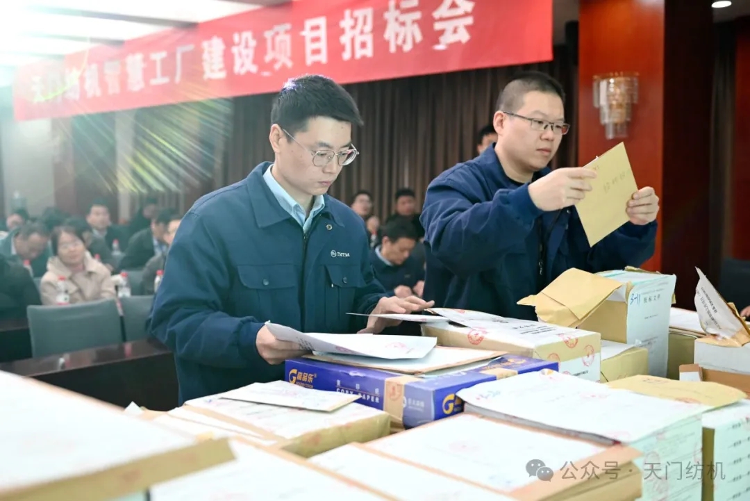 2024年11月25日上午,天門紡機科技大樓人頭攢動、會議室座無虛席,一場智能倉庫項目招標會正在緊張有序地推進之中,來自國內外26家單位的50多名投標人在焦慮與期盼中投出自己的標書。